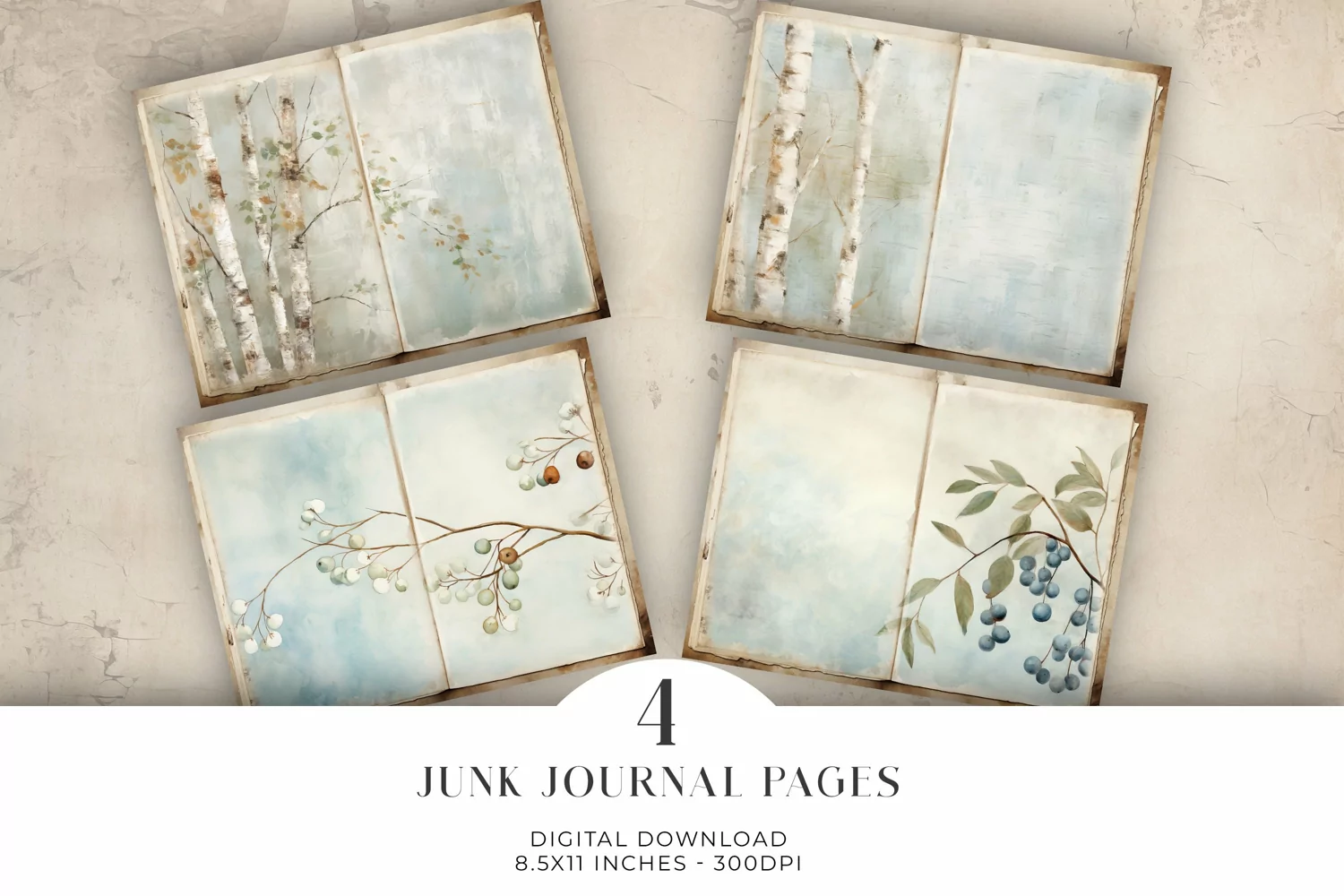 Watercolour Junk Journal Digital Paper Bi-fold