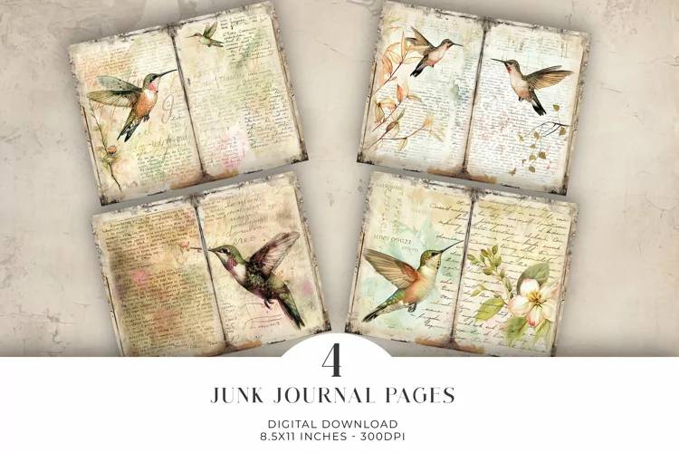 Shabby Chic Scrapbook Paper Watercolor Digital Paper Printable Journal Junk Journal Pages Junk Journal Paper Printable Page Watercolour Junk Journal Paper Watercolor Junk Journal Digital Paper Bi-fold 4 Hummingbird Junk Journal Digital Paper Bi-fold