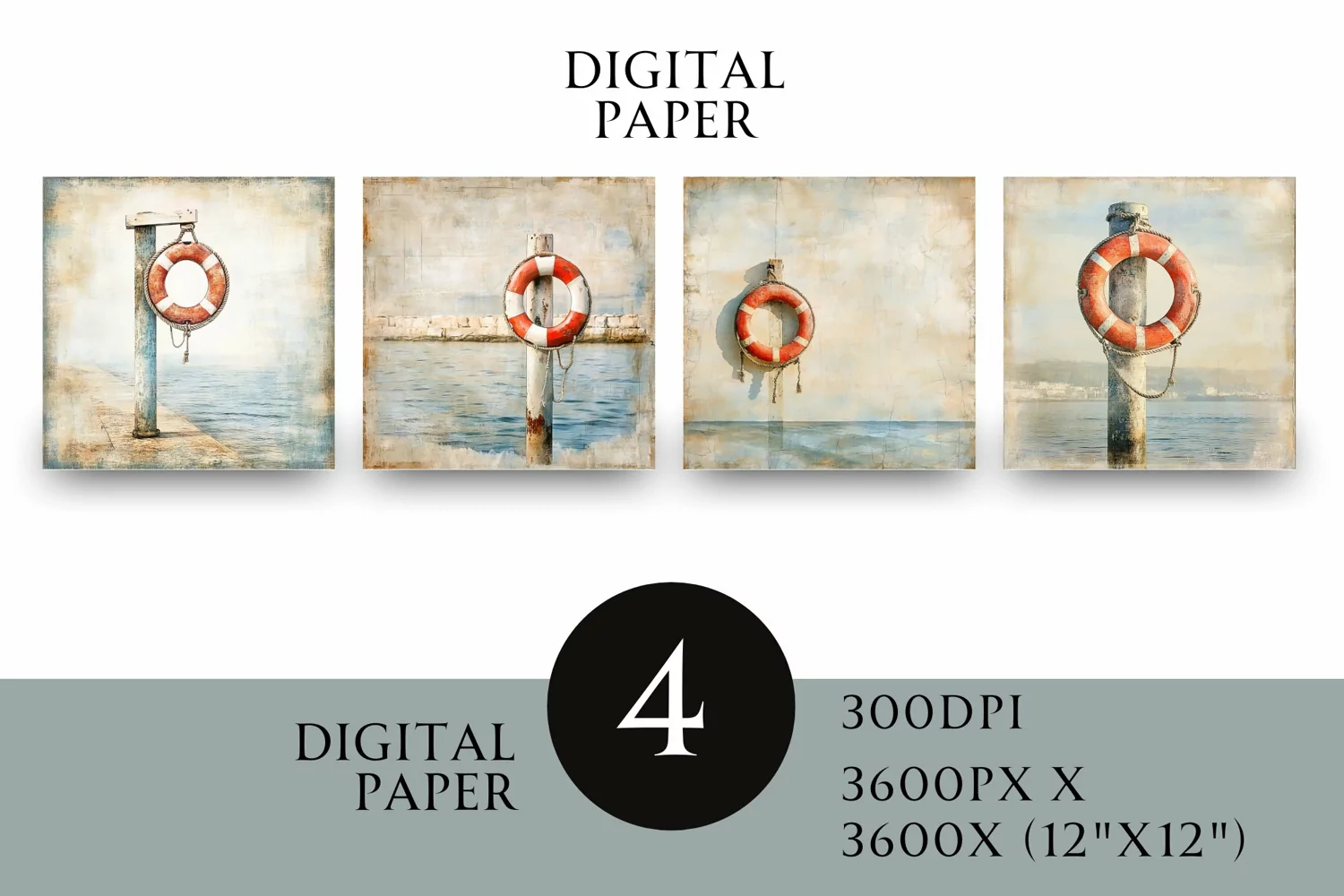Sea Digital Paper Fishing Scrapbook Paper Watercolor Digital Paper Printable Journal Junk Journal Pages Junk Journal Paper Scrapbook Torn Paper Junk Journal Digital Paper Lifebuoy Scrapbook Square Paper Junk Journal