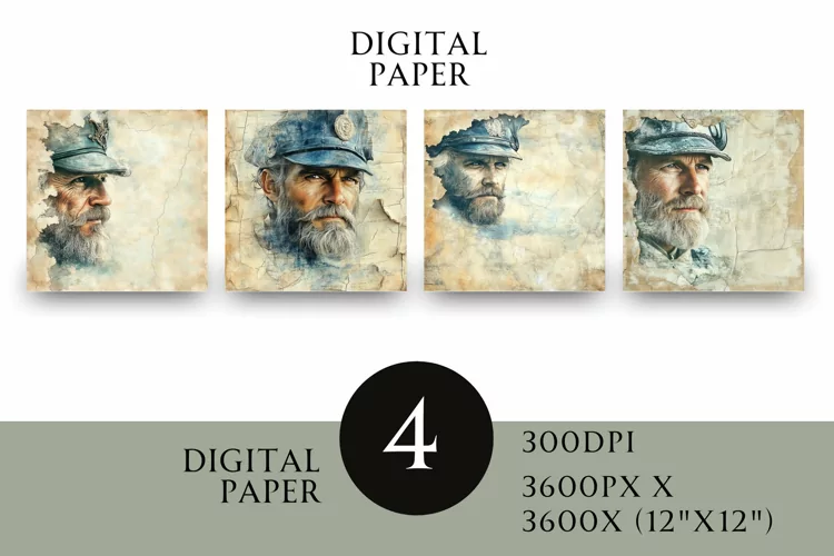 Sea Digital Paper Fishing Scrapbook Paper Watercolor Digital Paper Printable Journal Junk Journal Pages Junk Journal Paper Scrapbook Torn Paper Junk Journal Digital Paper Fisherman Scrapbook Square Paper Junk Journal