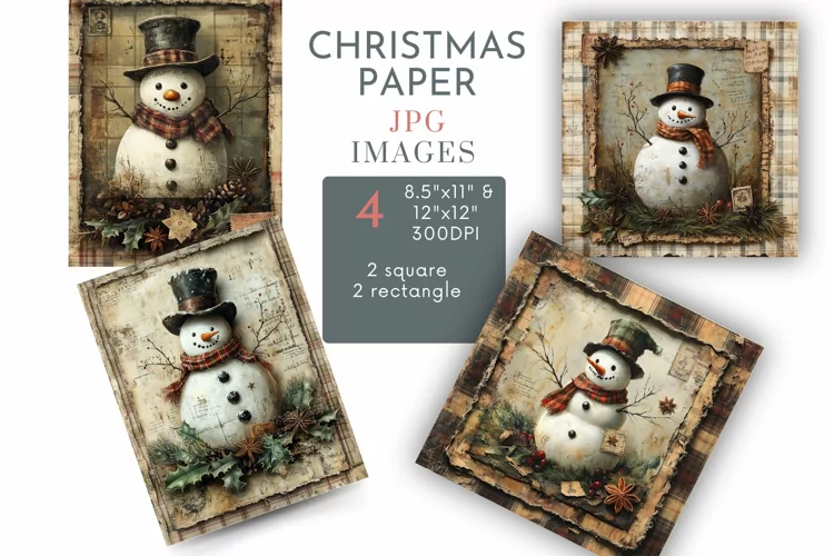 Digital Paper Scrapbook Paper Watercolor Digital Paper Snowman Digital Paper Printable Journal Junk Journal Pages Junk Journal Paper Christmas Square Digital Paper Christmas Snowman Scrapbook Square Paper Junk Jour