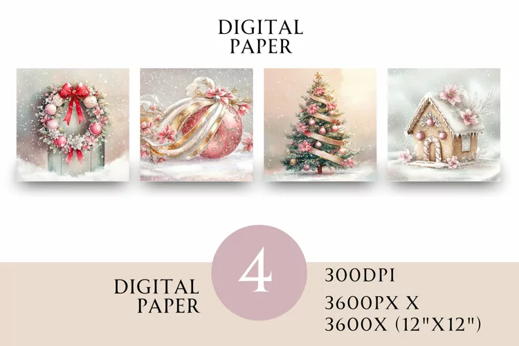 Scrapbook Paper Watercolor Digital Paper Christmas Paper Christmas Scrapbook Pink Christmas Printable Journal Junk Journal Pages Festive Paper Junk Journal Paper Christmas Journal Paper
