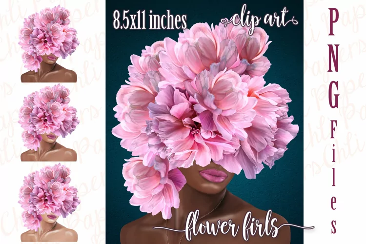 Printable ClipartFashion IllustrationGirls ClipartPrintable StickersClipart For PlannerWoman Wall ArtFloral Head WomanWoman Art DecorFlower African WomanGirl Head Flowers