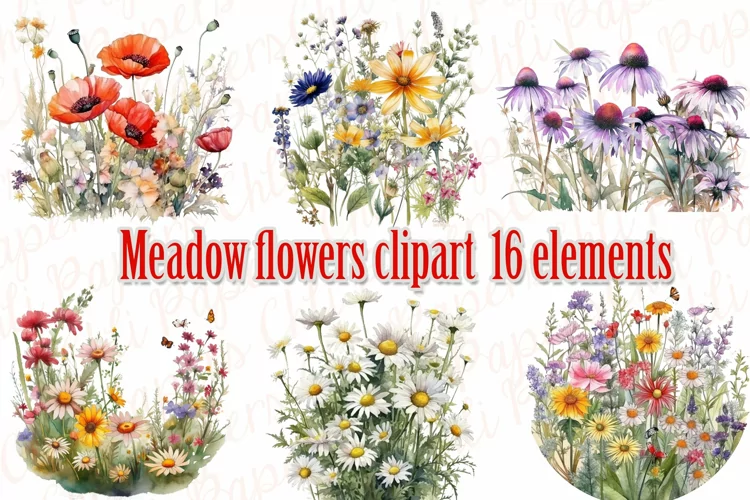 Watercolor Flowers Watercolor Clipart Summer Clipart Wildflower Clipart Wild Flower Clipart Countryside Clipart Meadow Field Round Scenes Meadows Clipart Meadow Landscapes