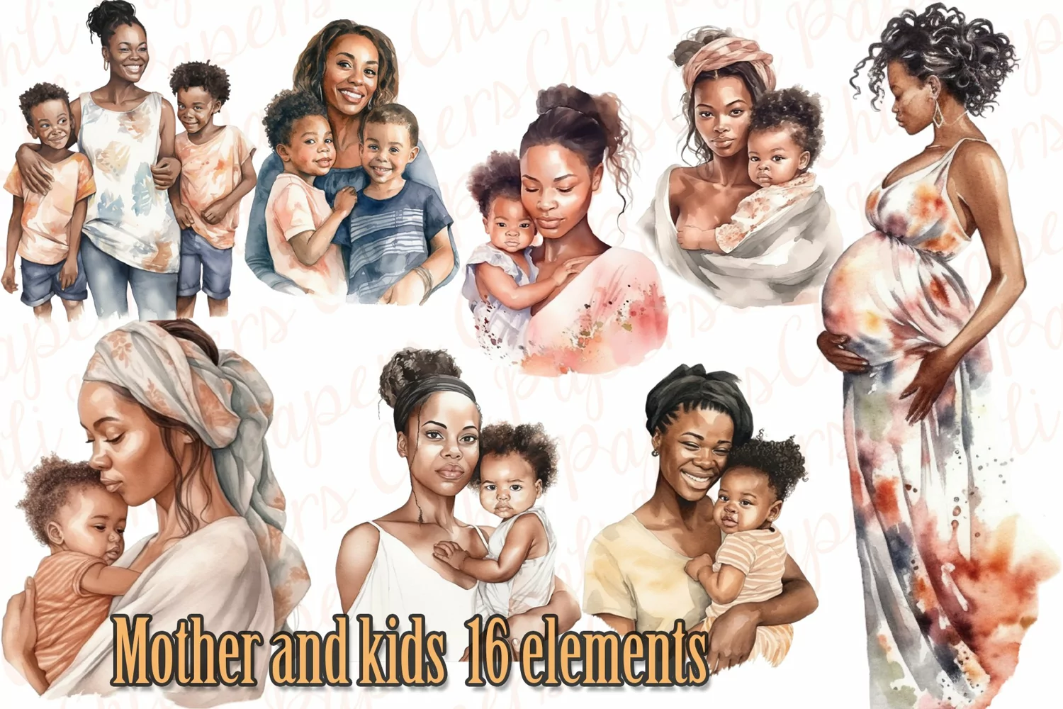 Mothers Day clipart,Mother and kids clipart,African American example image 1