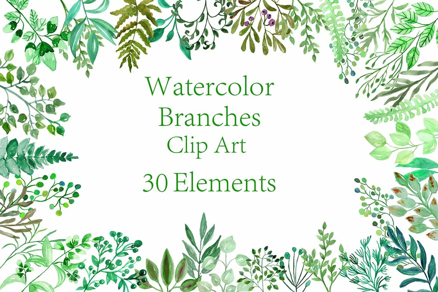 Invitation Clipart Watercolor Graphics Floral Clipart Watercolour Clipart Foliage Clipart Green Watercolor Branches Clipart Greenery Clipart Nature Greenery Watercolor Branches
