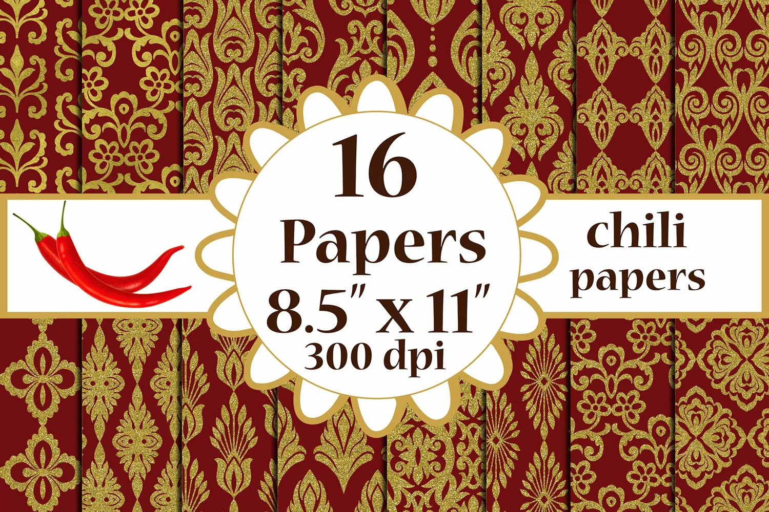 Gold Wedding Damasks, GOLD WEDDING PAPER, Maroon gold papers