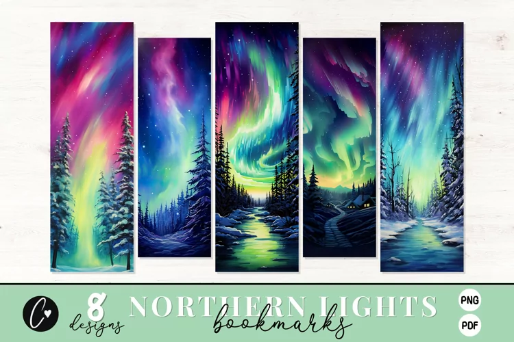 Northern Lights Printable Bookmark, Travel Junk Journal Bookmarks, Printable Northern Lights Bookmark is perfect for your 2x6 inch Sublimation, scrapbooking, card making, invitations, blog and web design, Projects!