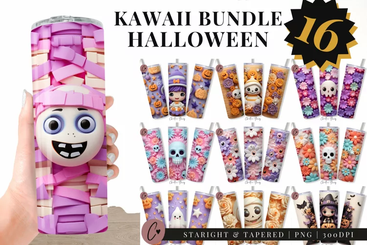 3D Kawaii Halloween Tumbler Bundle, 20oz Skinny Tumbler Sublimation Design, Straight & Tapered Tumbler Wrap PNG! Let's get Creative!