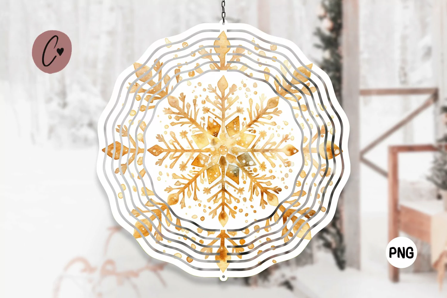 Golden Christmas Snowflake Wind Spinner, Sublimation Wind Spinner PNG, Christmas Sublimation!