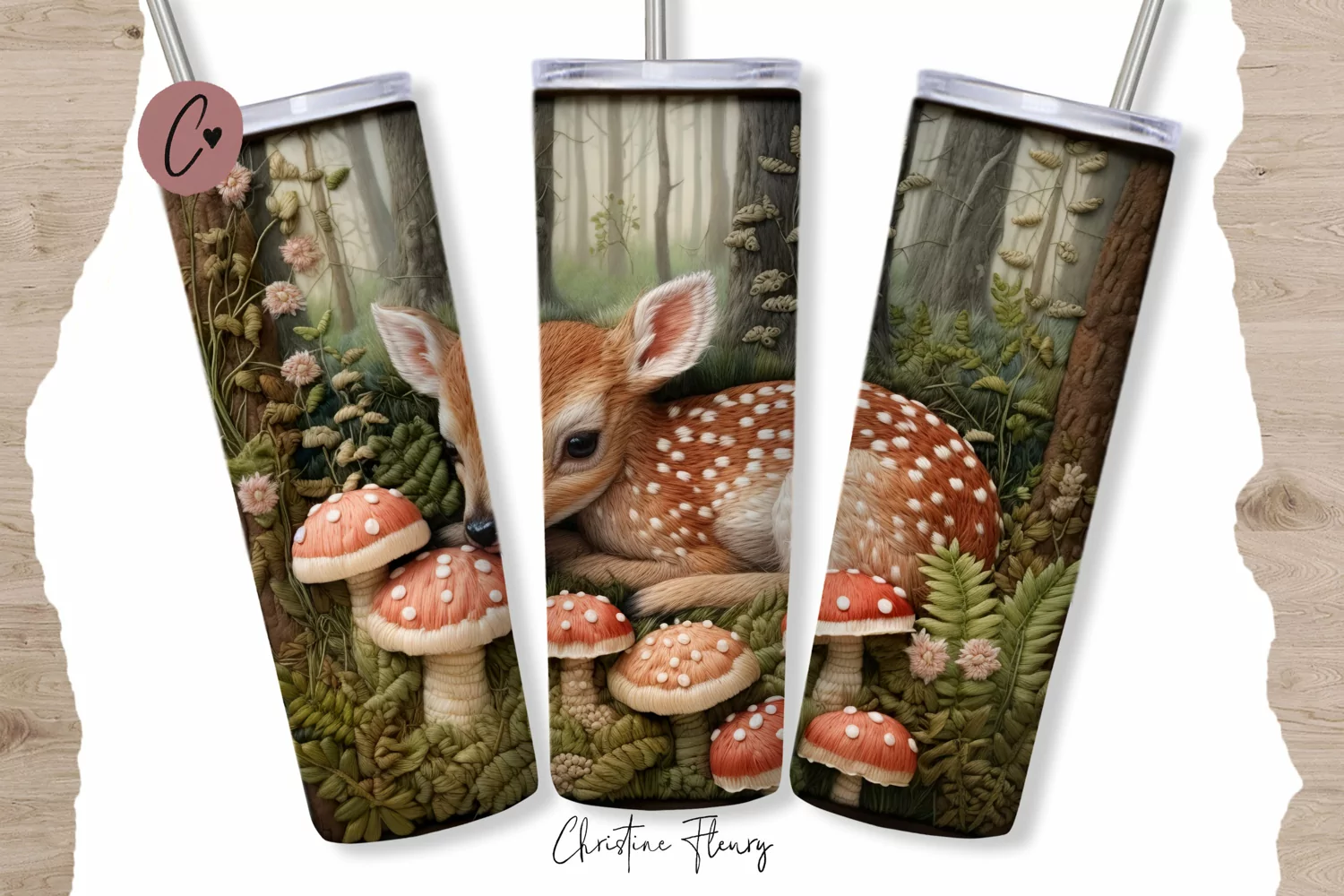 3D Embroidered Baby Deer Tumbler Wrap PNG, 20oz Skinny Tumbler Sublimation Design, Straight & Tapered Tumbler Wrap PNG! Let's get Creative!