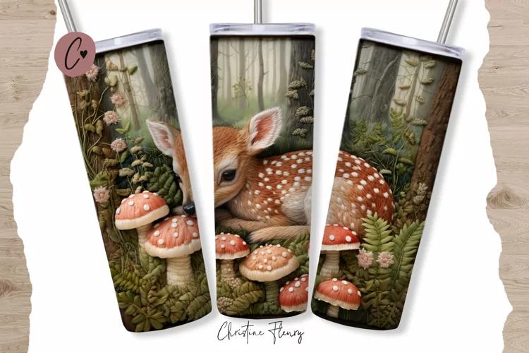 Instant Download Deer Sublimation 3d Deer Skinny Tumbler Wrap 20oz Tumbler Wrap 3d Tumbler Wrap 3d Tumbler Design 3d Embroidered Embroidered Deer Baby Deer Tumbler