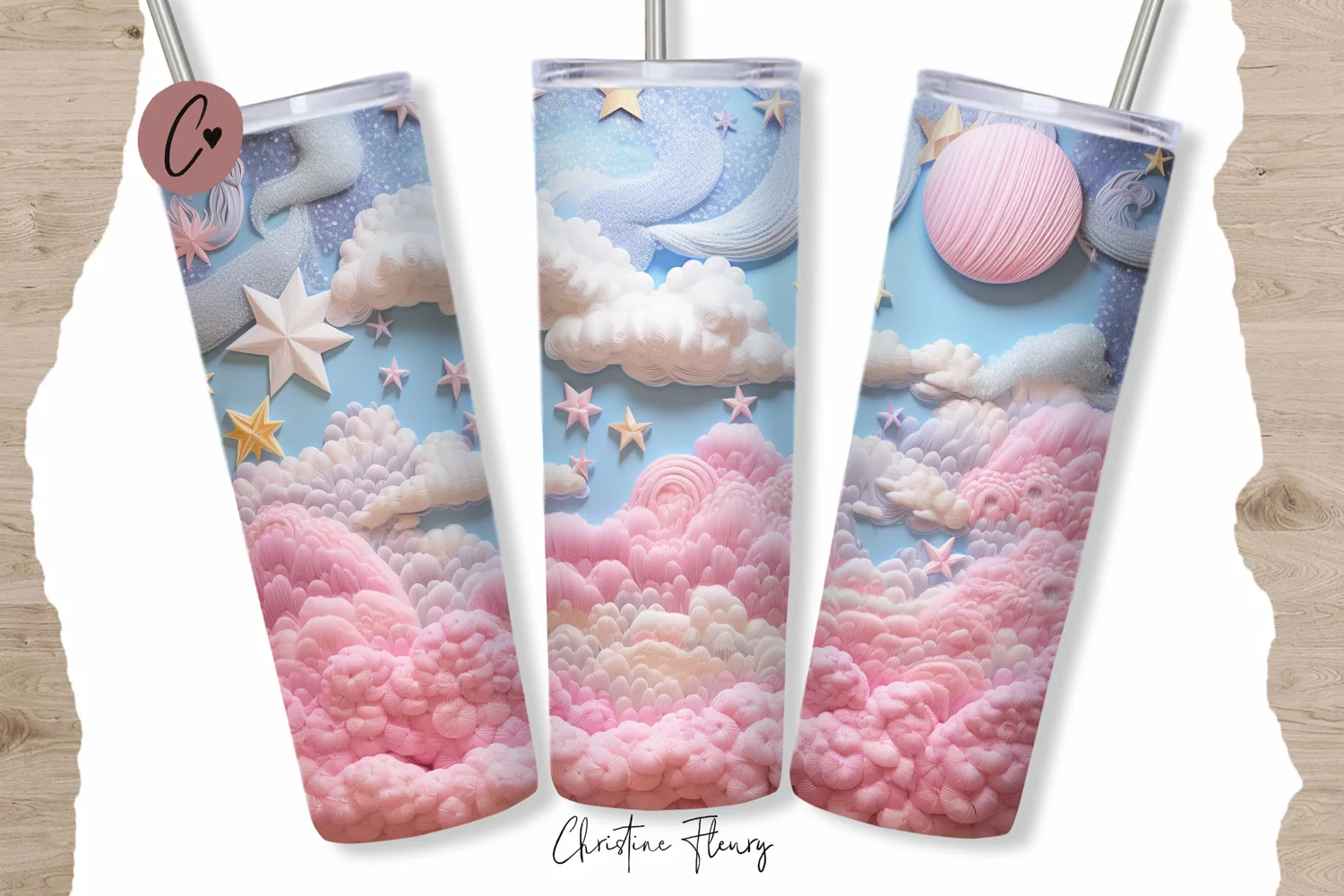 3D Embroidered Sky Tumbler Wrap PNG example image 1
