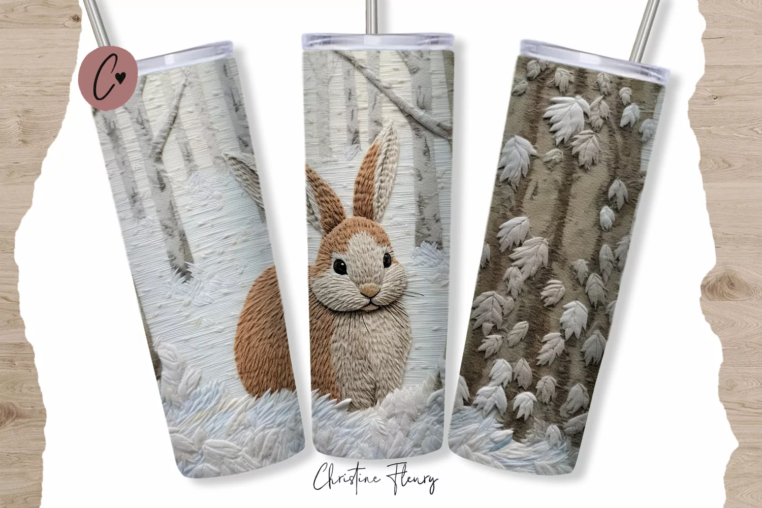 3D Embroidered Winter Bunny Tumbler Wrap PNG, 20oz Skinny Tumbler Sublimation Design, Straight & Tapered Tumbler Wrap PNG! Let's get Creative!