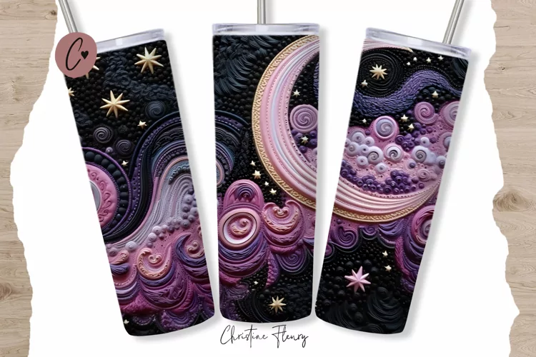 3D Embroidered Celestial Tumbler Wrap PNG, 20oz Skinny Tumbler Sublimation Design, Straight & Tapered Tumbler Wrap PNG! Let's get Creative!