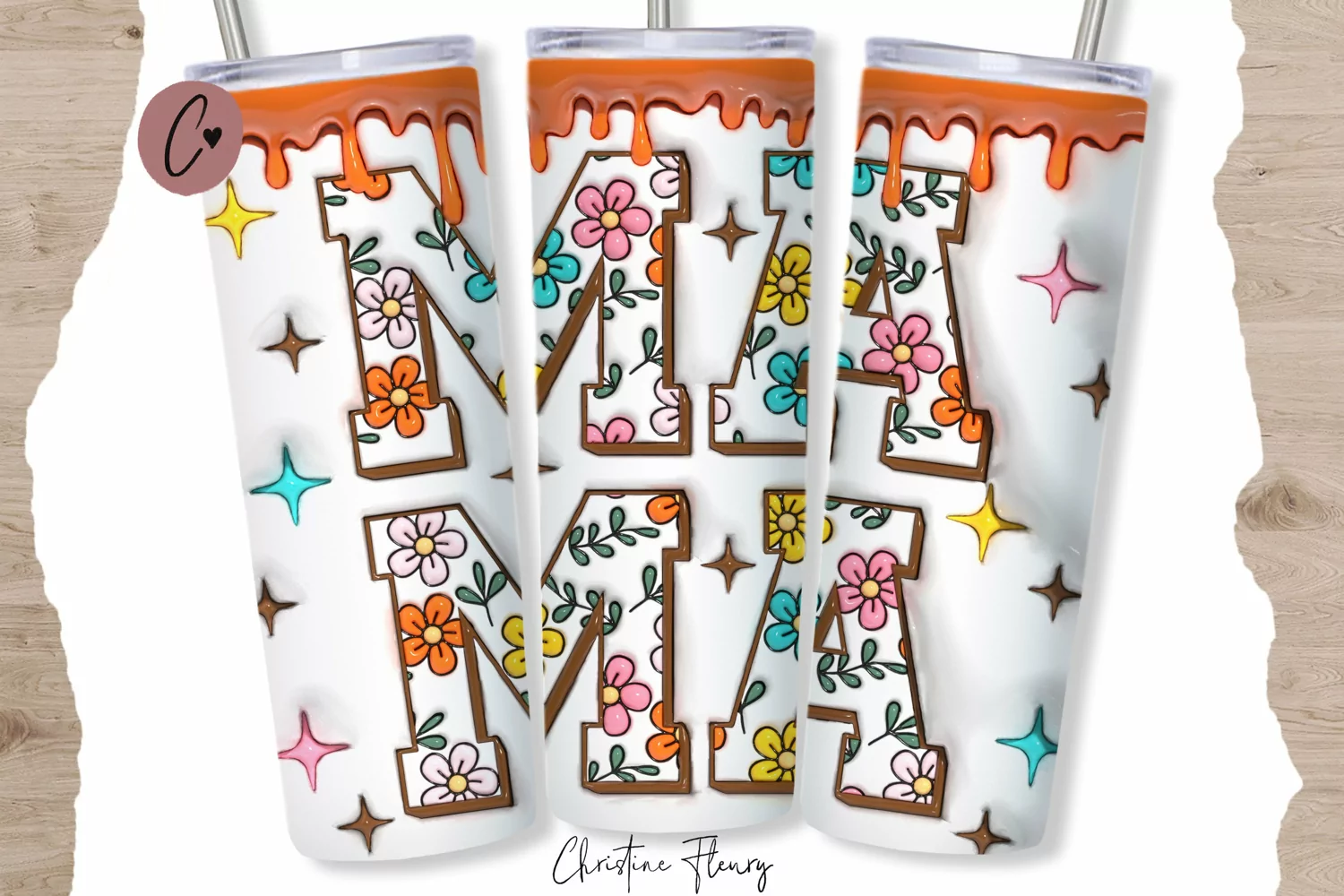3D Inflated Retro Mama Tumbler Wrap PNG, 20oz Skinny Tumbler Sublimation Design, Straight & Tapered Tumbler Wrap PNG! Let's get Creative!