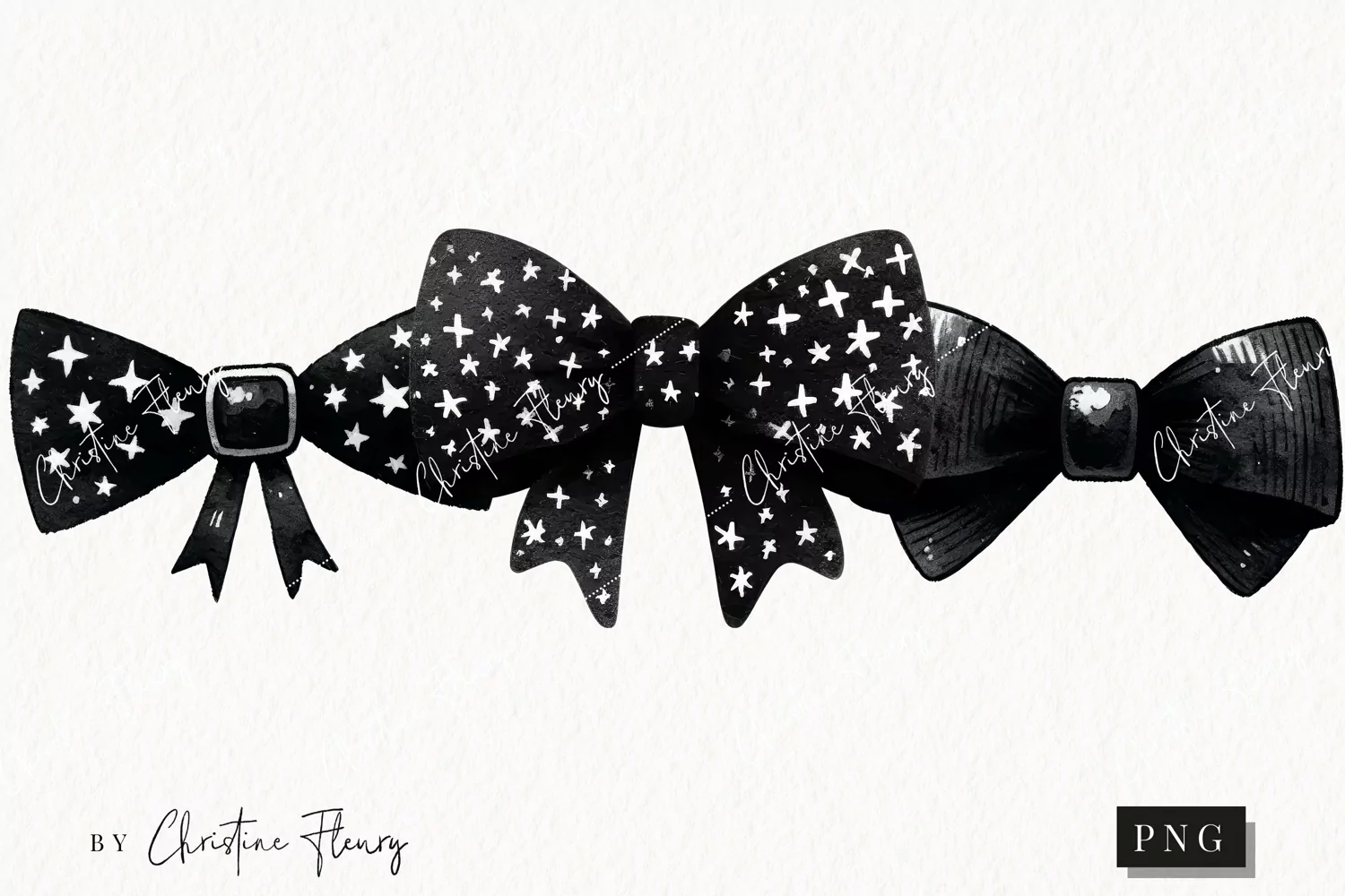 Watercolor Black Coquette Bow | Gothic PNG example image 1