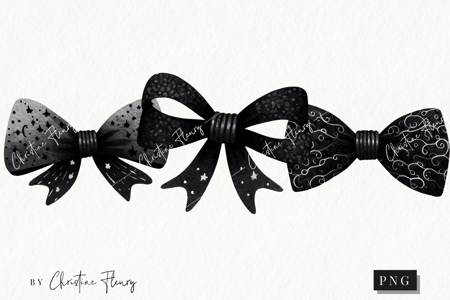 Watercolor Black Coquette Bow | Gothic PNG example image 1