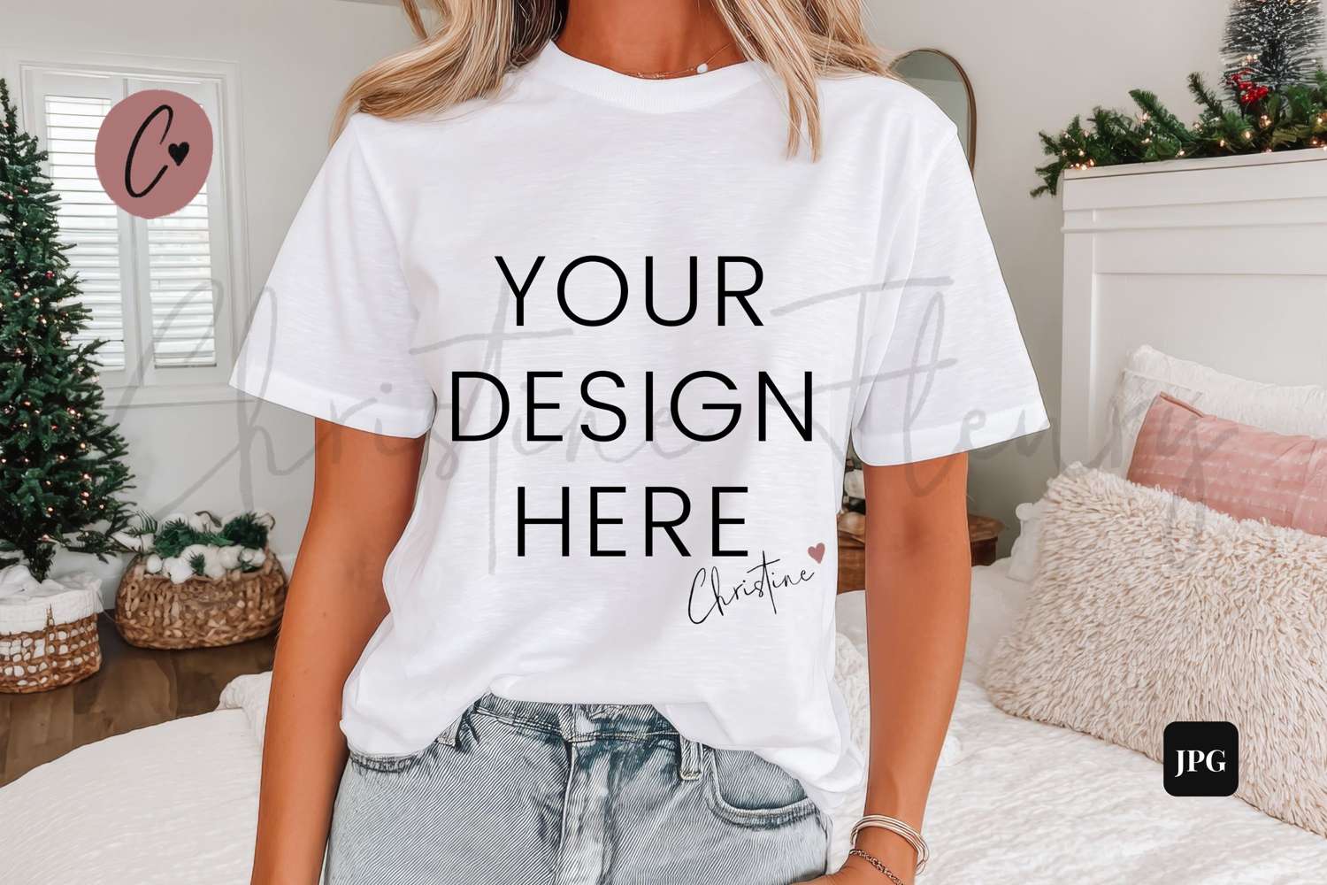 White Shirt Mockup Bella Canvas 3001 Winter Mockup Trendy Mockup Festive Mockup Christmas Tshirt Mockup Christmas Aesthetic Mockup Trendy Christmas Mockup Comfort Colors 1717 White Cc 1717 Mockup