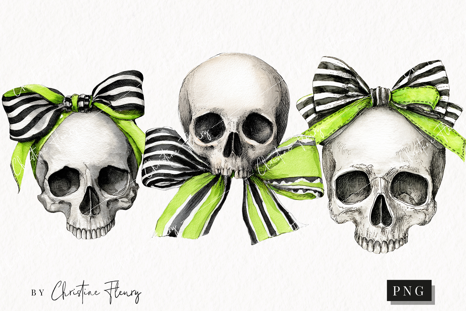 Whimsical Coquette Skull Clipart | Halloween PNG example image 1