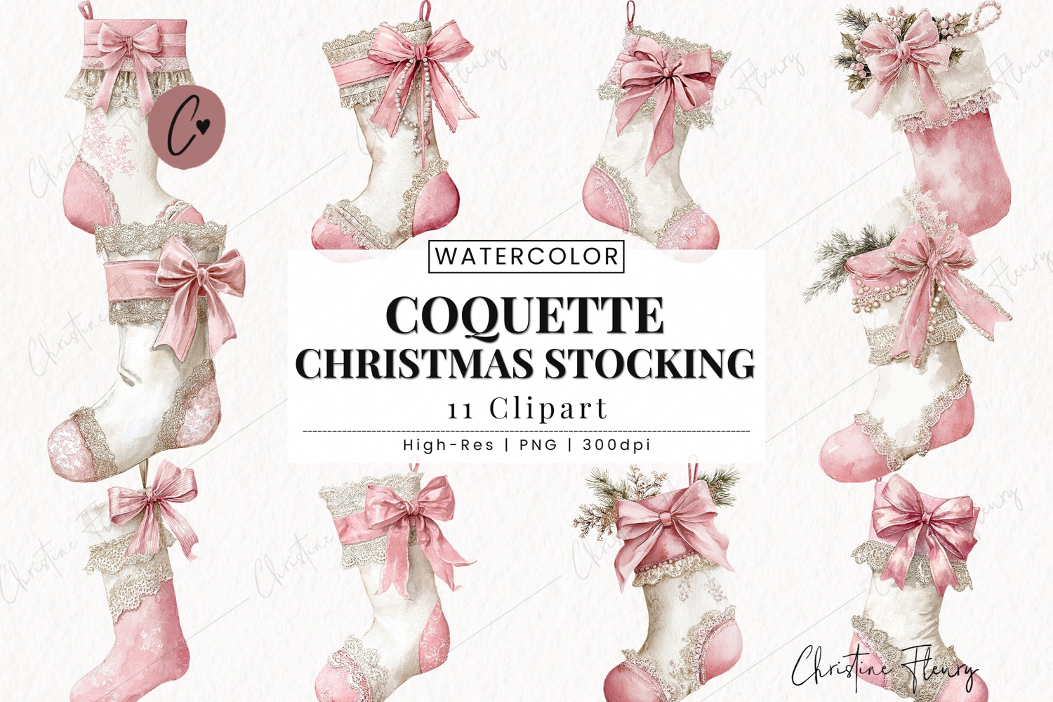 Coquette Christmas Stocking Clipart Bundle example image 1