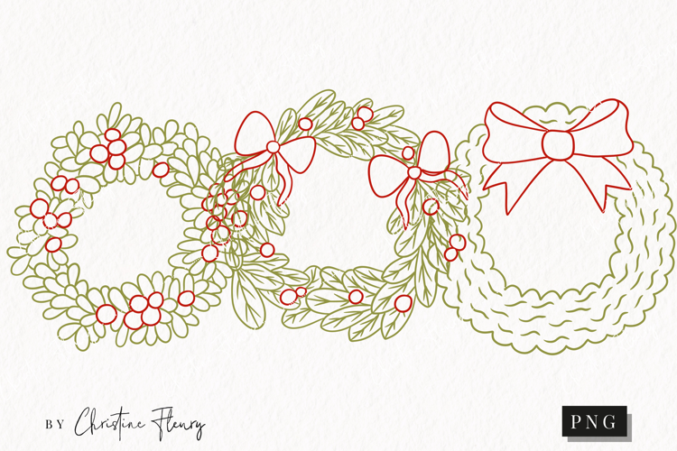 Similar Design Products to Hand Drawn Wreath Clipart | Christmas PNG