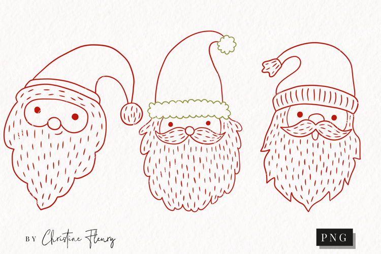 Similar Design Products to Hand Drawn Santa Heads Clipart | Christmas PNG