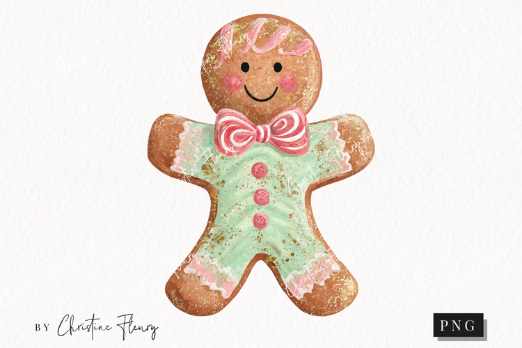 Brush Stroke Gingerbread Cookie Clipart | Preppy Christmas
