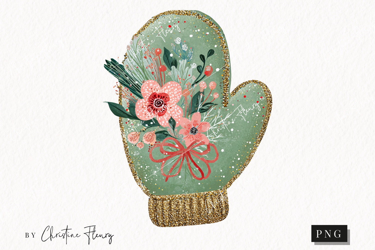 Brush Stroke Christmas Glove Clipart | Preppy Christmas PNG example image 1