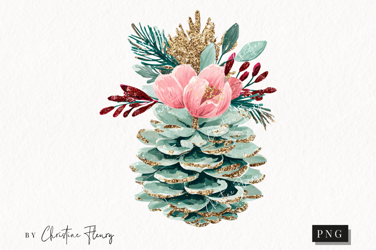 Brush Stroke Christmas Pinecone Clipart | Preppy Christmas example image 1