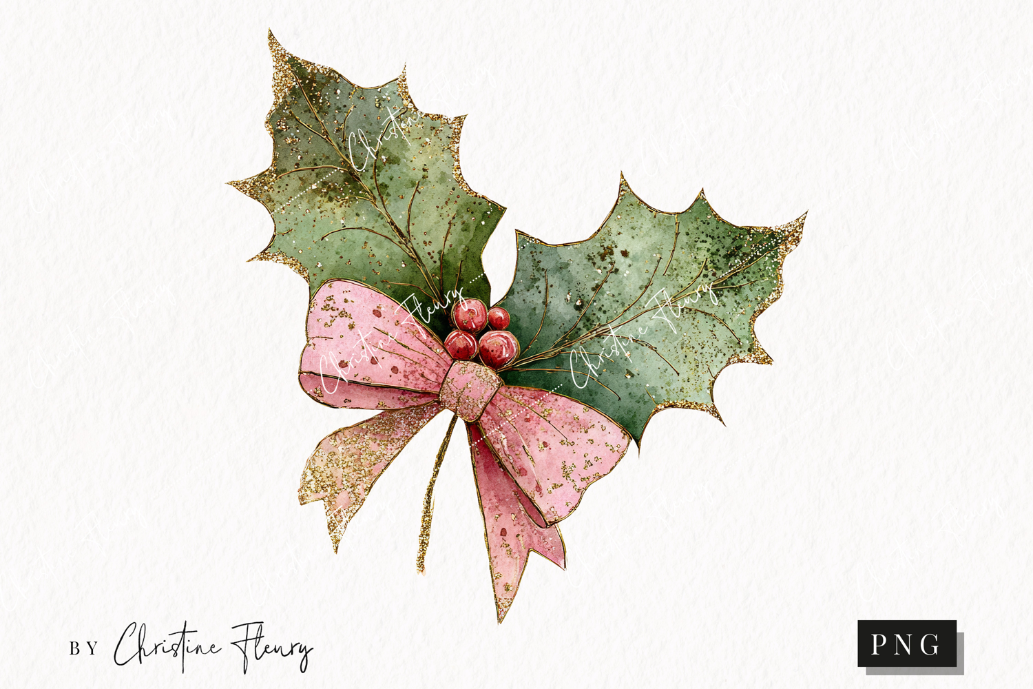 Brush Stroke Christmas Holly Clipart | Preppy Christmas PNG example image 1