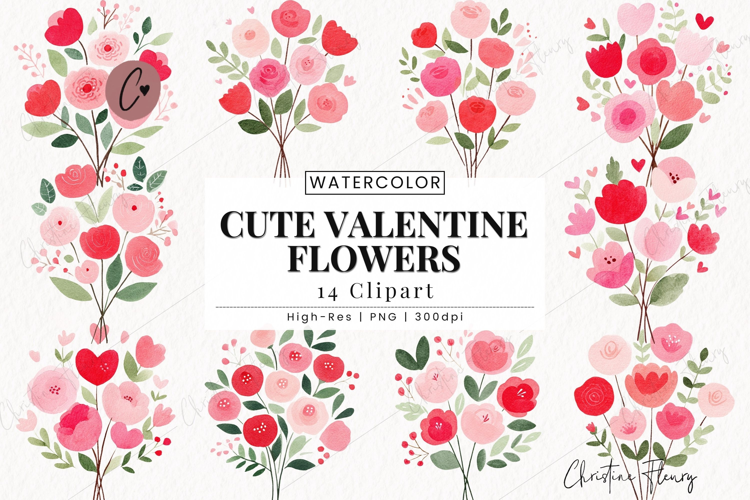 Cute Valentine Flowers Clipart Bundle includes 14 Valentines elements designed at a high resolution making them perfect for your print and digital projects. Easily use this clipart for your next Valentine's Day sublimation, digital designs, gifts, home decor, tumbler wraps, and so much more! Let’s get Creative!