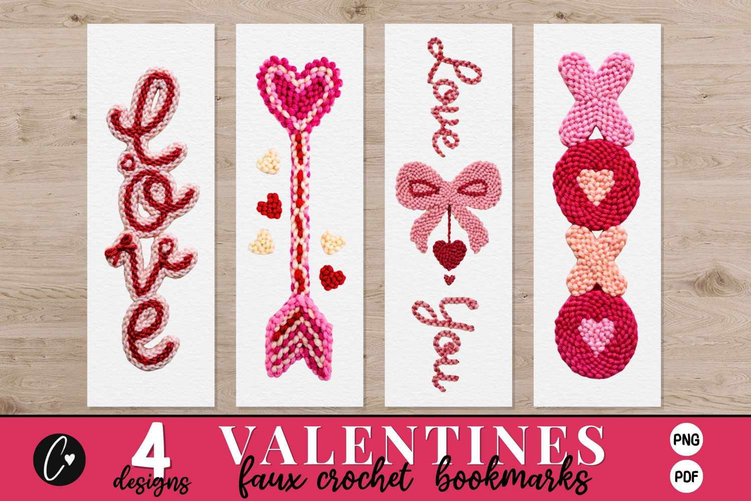 Similar Design Products to Printable Valentines Faux Crochet Bookmarks
