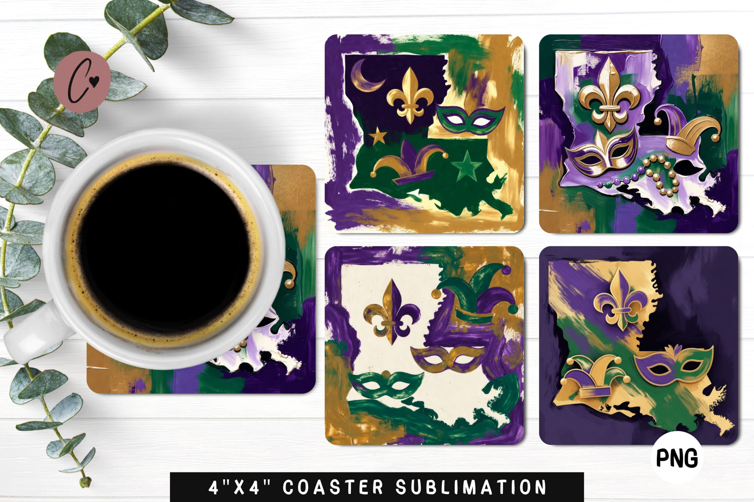 Louisiana Png Mardi Gras Sublimation Car Coaster Square Coaster Mardi Gras Coaster Let The Good Times Roll Png Square Coaster Sublimation Faux Latch Hook Trendy Mardi Gras Designs Map Coaster