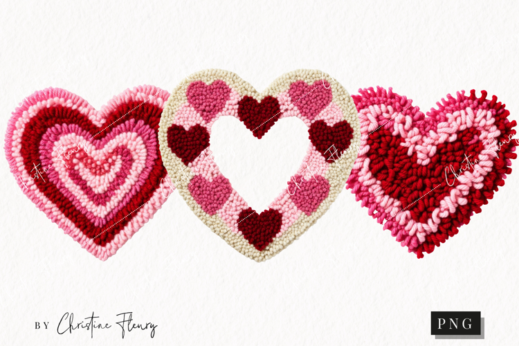 Faux Latch Hook Valentine Hearts| Valentine's Day PNG example image 1