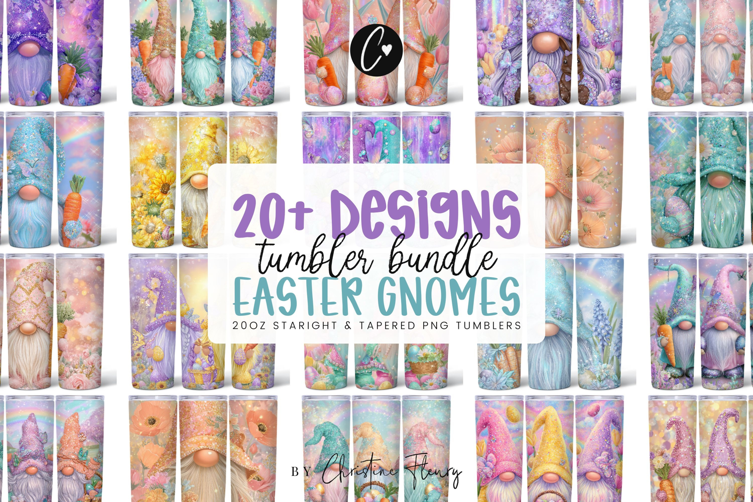Easter Gnome Tumbler Wrap Bundle PNG is made for 20 oz Skinny Tumblers and comes in straight and tapered styles! Let's get Creative!