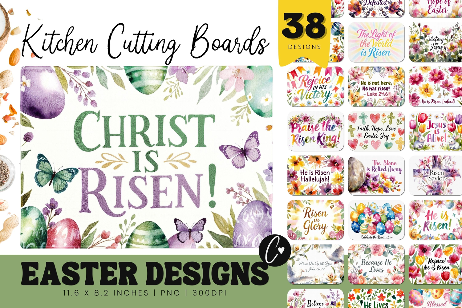 Christian Easter Cutting Board Bundle are created at a high resolution of 300dpi making it perfect for your next Easter sublimation projects! Let's get Creative!