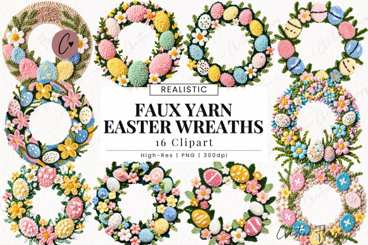 Faux Yarn Easter Wreath Clipart Bundle