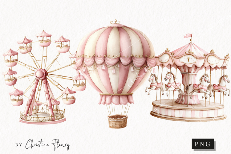 Watercolor Pink Carousel Clipart