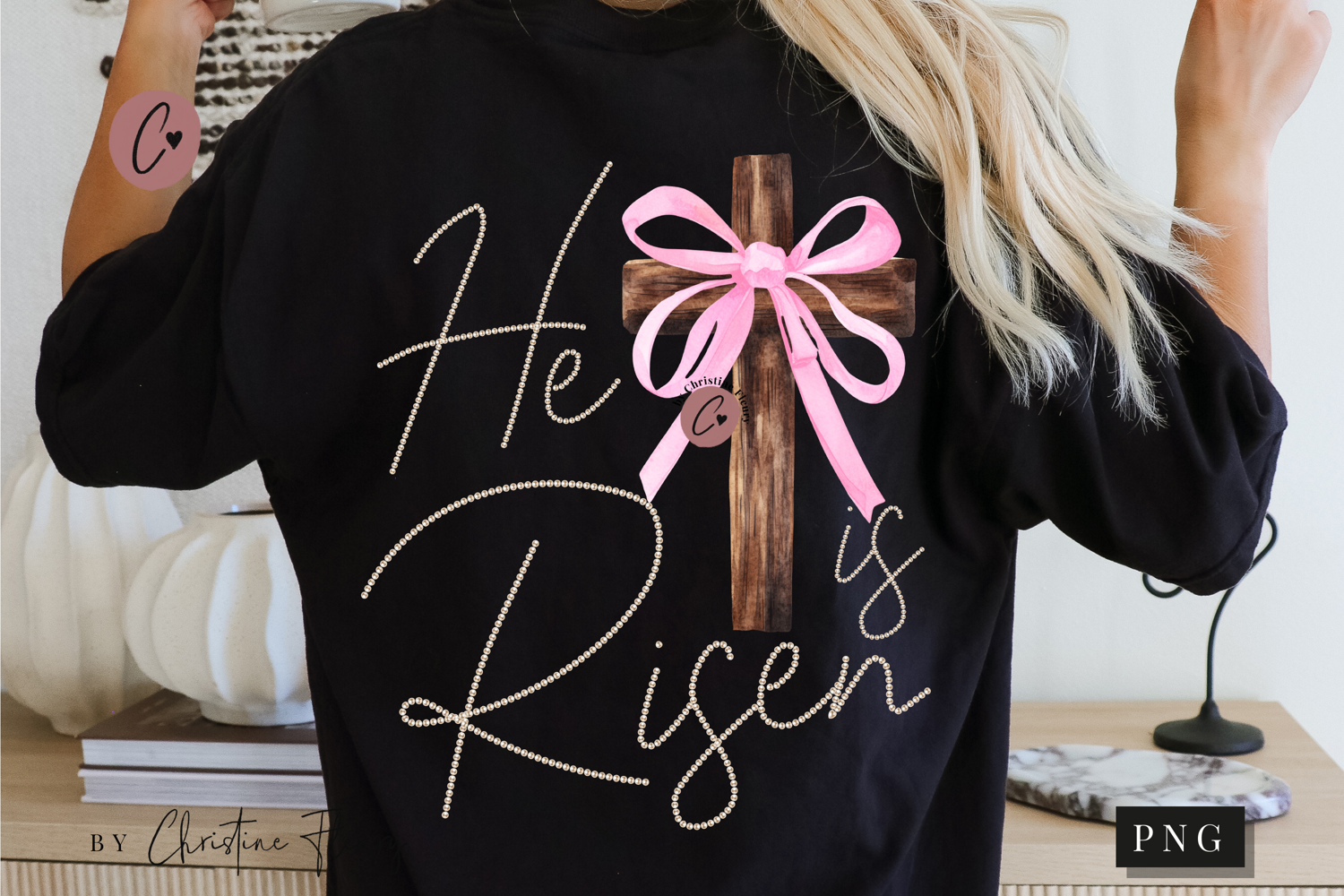Similar Design Products to Coquette Pearl He Is Risen PNG Design | Christian Png