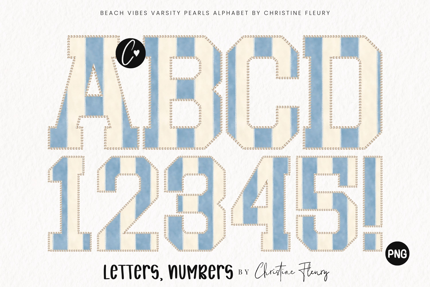 Stripes Varsity Pearls Beach Vibes Alphabet PNG example image 1