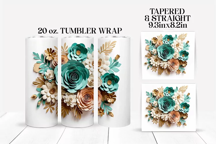 Introducing a stunning 3D Flowers Tumbler Wrap crafted exclusively for 20oz skinny sublimation tumblers.