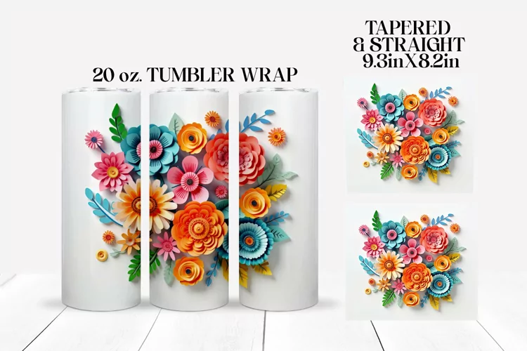 Introducing a stunning 3D Flowers Tumbler Wrap crafted exclusively for 20oz skinny sublimation tumblers.
