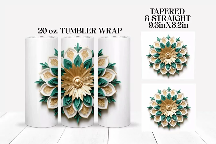 Introducing a stunning 3D Mandala Tumbler Wrap crafted exclusively for 20oz skinny sublimation tumblers.
