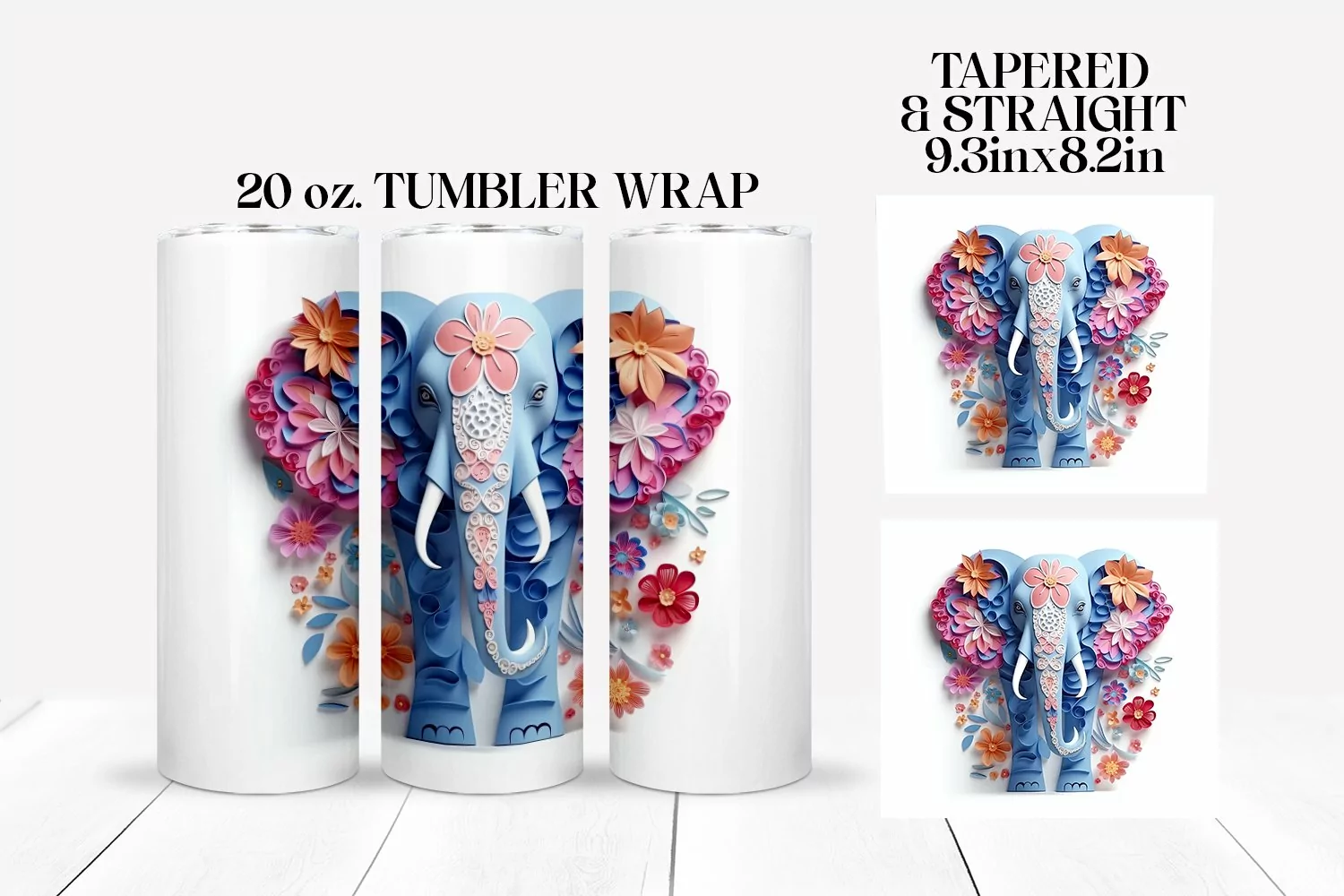 Introducing a stunning 3D Elephant Tumbler Wrap crafted exclusively for 20oz skinny sublimation tumblers.