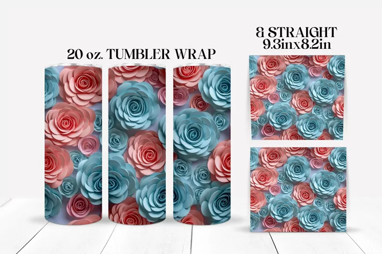 Introducing a stunning 3D Flowers Tumbler Wrap crafted exclusively for 20oz skinny sublimation tumblers.