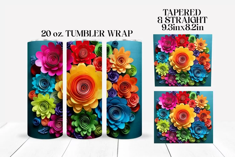 Introducing a stunning 3D Flowers Tumbler Wrap crafted exclusively for 20oz skinny sublimation tumblers.