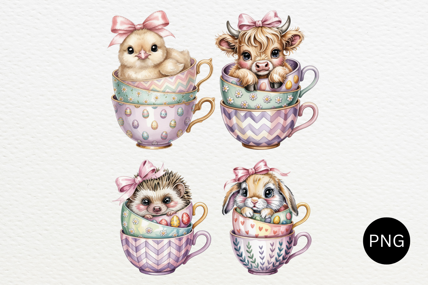 Similar Design Products to Easter Baby Animals In Teacups PNG Watercolor Clipart