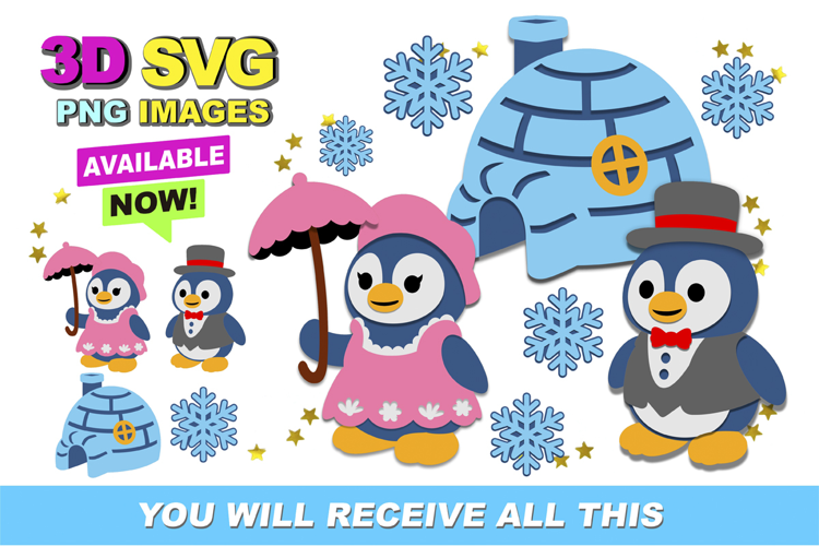 Winter Svg Files Penguin Antarctica Penguin Svg Penguin Family Winter Birthday Elements File Elements 3d Svg Penguin 3d Svg