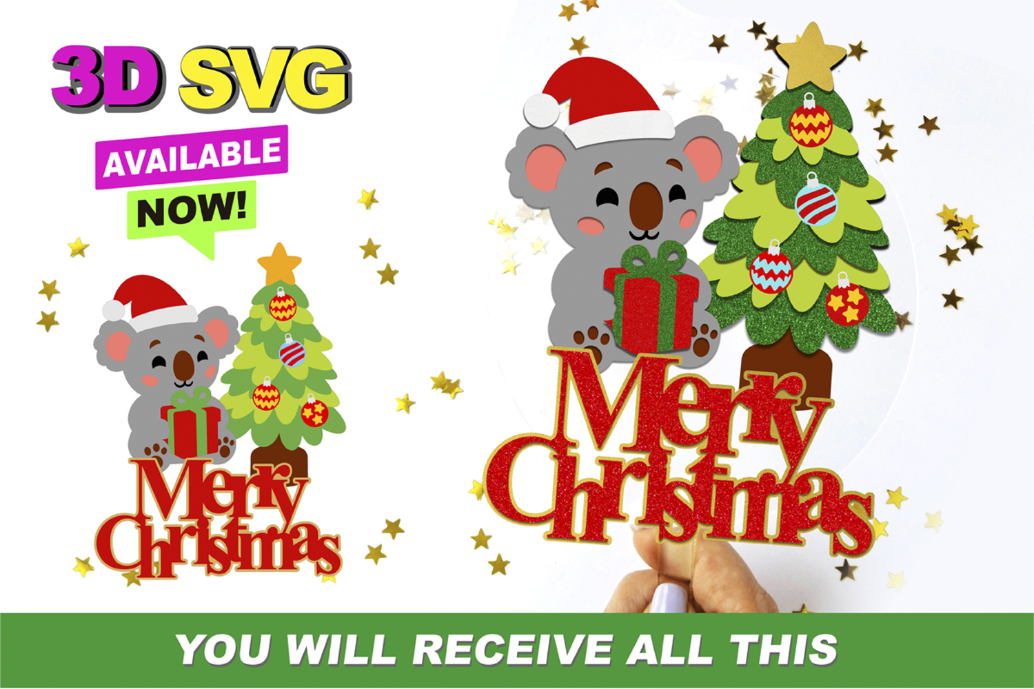 Cake Topper Svg Koala Christmas Christmas Cake Topper Svg Shaker Cake Topper Cake Topper 3d Svg Svg Silhouette & Cricut Cut Design Craft Supplies & Tools Baby Koala Christmas Baby Koala File Koala Cake Topper